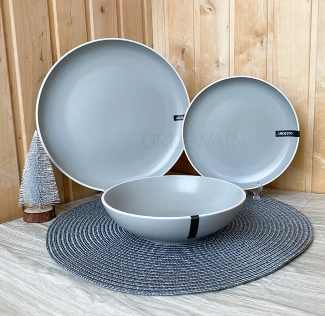 Сервіз столового посуду пастельний сірий 12 предметів 4 персони Ardesto Cremona кам'яна кераміка