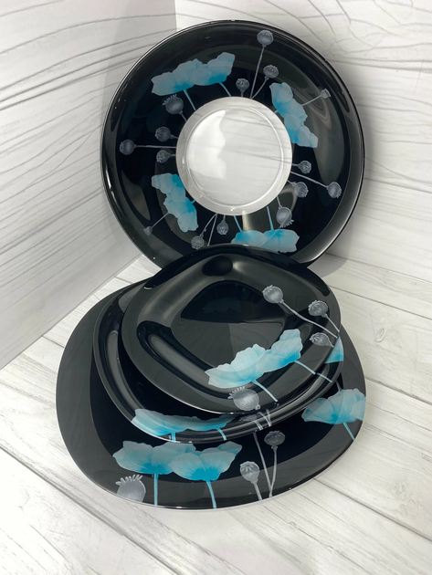 Столовий набір посуду тарілок і чашок 16 предметів на 4 особи Marble Clara порцеляновий Синій MD-16-3B