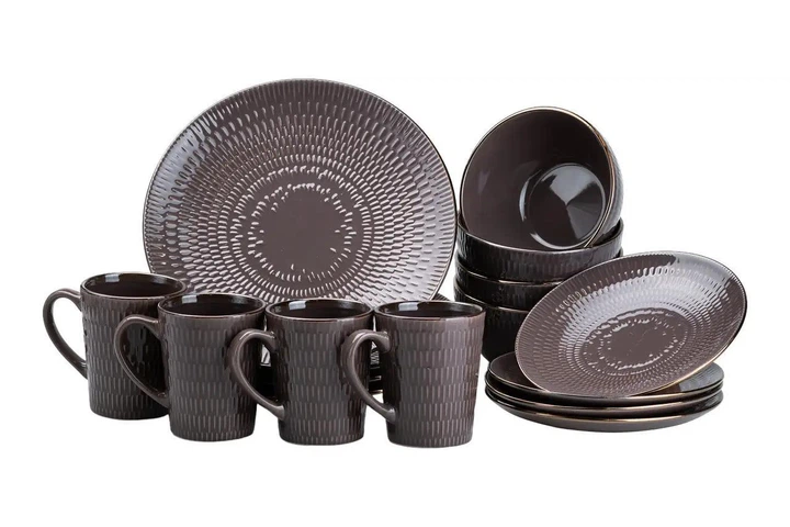 Сервіз столовий TS Kitchen набір столового посуду тарілки і чашки на 4 особи 16 предметів фарфоровий Коричневий
