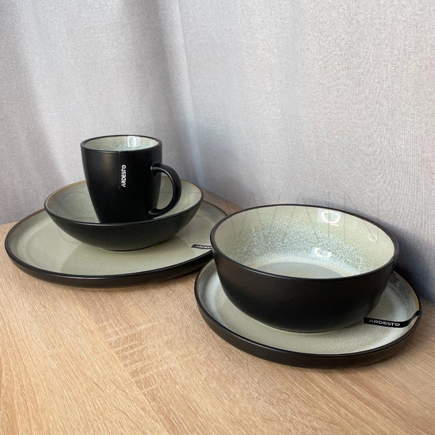 Столивий сервіз посуду 15 предметів на 3 персони ARDESTO Bolzano чорно-зелений кам’яна кераміка