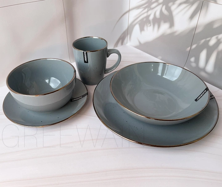 Сервіз столового посуду пастельний сірий 30 предметів 6 персон Ardesto Cremona кам'яна кераміка