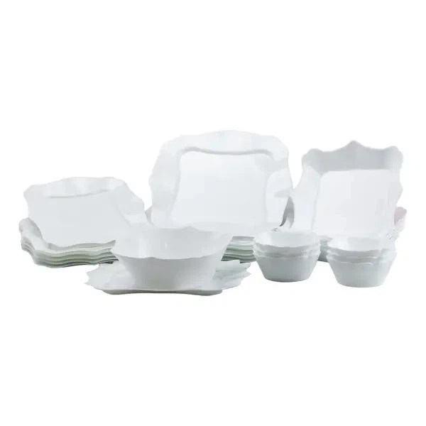 Сервіз універсальний столовий керамічний White square 26 предметів на 6 персон набір посуду з квадратними тарілками підставн