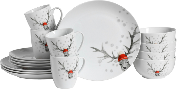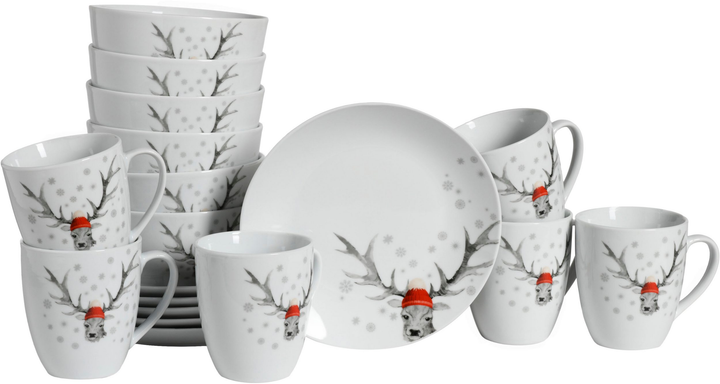 Різдвяний набір столового посуду CreaTable Luna Deer із 16 предметів на 4 персони порцеляна