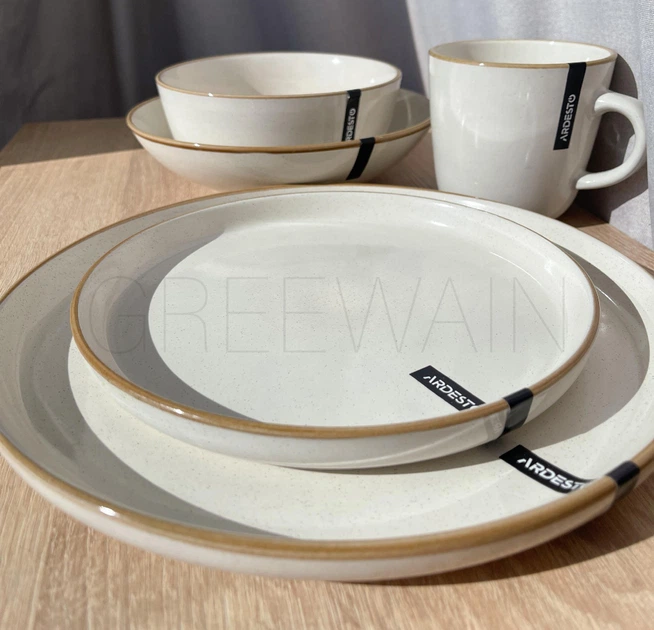 Столивий сервіз посуду 60 предметів на 12 персон Ardesto Apulia бежевий кам’яна кераміка