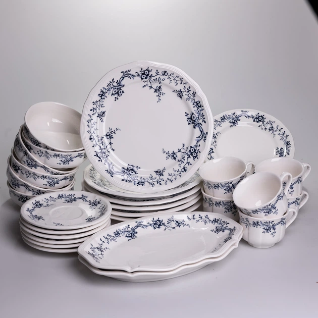 Столовий сервіз Vintage Elegant порцеляновий 32 предмети на 6 персон, синій, YY78-6A