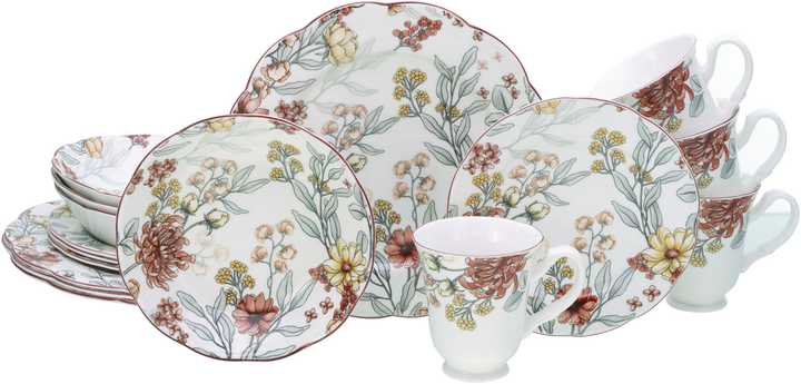 Набір столового посуду CreaTable Fiore з 16 предметів на 4 персони кераміка білий із квітковим візерунком