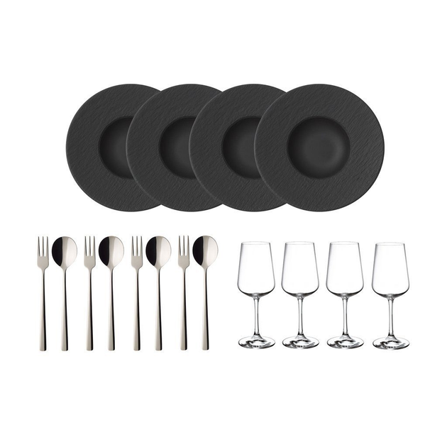 Набір столового посуду для пасти Villeroy & Boch Manufacture Rock із 12 предметів на 4 персони порцеляна чорний