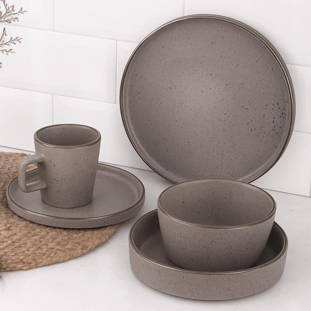 Столивий сервіз посуду 60 предметів на 12 персон Ardesto Fasano сіро-коричневий матовий кераміка