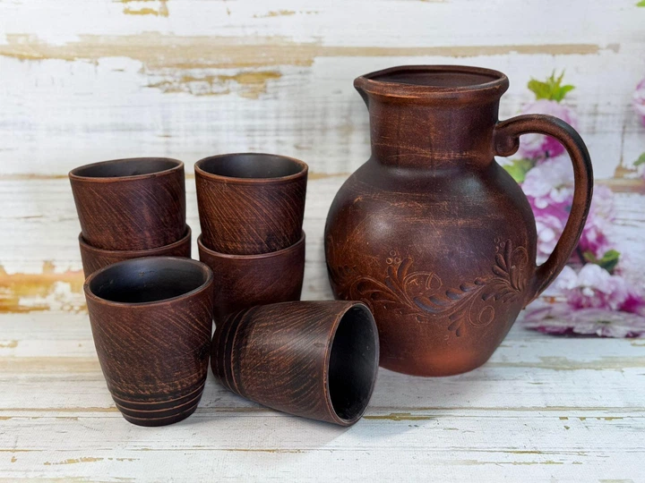 Набір глиняного посуду для напоїв Кувшин 2 л 6 стаканів 300 мл