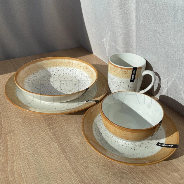 Столовий сервіз Ardesto Siena 10 предметів 2 персони біло-помаранчевий порцеляна