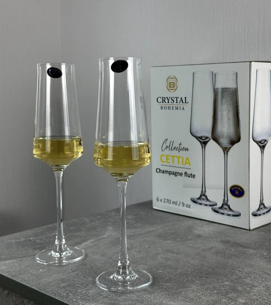Набір кришталевих келихів для шампанського 270 мл Cettia 6шт, Crystalite Bohemia