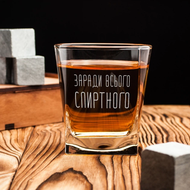Склянка для віскі "Заради всього спиртного", російська, Дерев'яна подарункова коробка 4602075