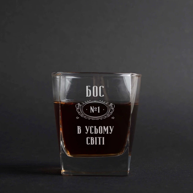 Склянка для віскі "Бос №1 у всьому світі" у дерев'яній подарунковій коробці з гравіюванням 4602050