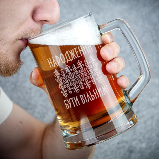 Келих пивний з гравіюванням Народжений бути вільним!, WoodPresent