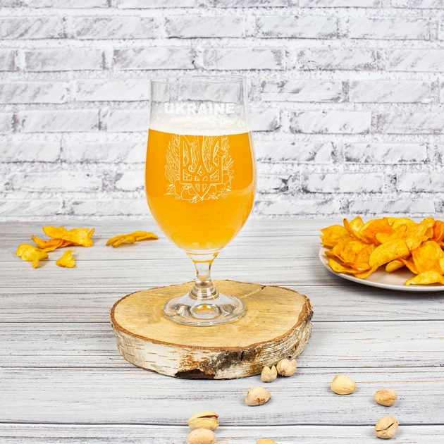Пивний келих з гравіюванням герба України, WOODPRESENT
