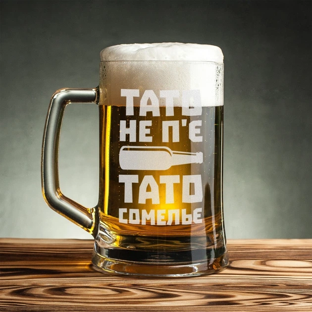Кухоль для пива "Тато не п'є. Тато сомельє" в крафтовій коробці 4632202