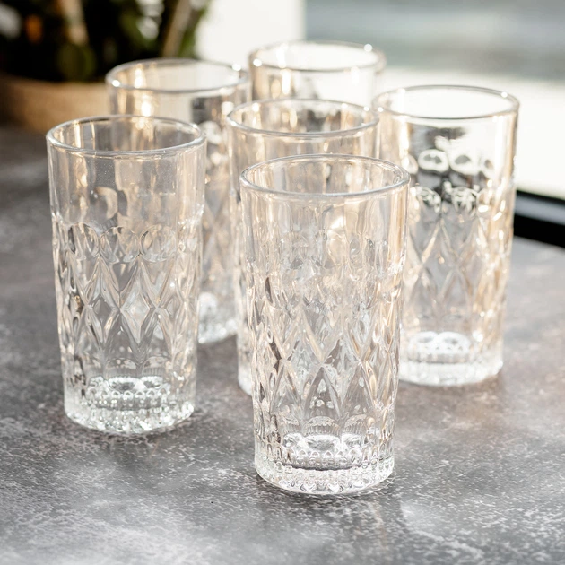 Набір склянок для напоїв, 6 шт по 400 мл "Jooki", товсте скло, стакани для холодних напоїв, скляні вироби