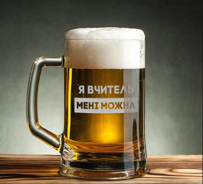Кружка для пива "Я вчитель мені можна" в крафтовій коробці 4599491
