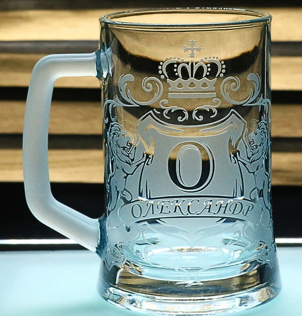 Іменний пивний келих 670 мл Олександр з гравіюванням Кухоль з гербом короною левами Персоналізований подарунок