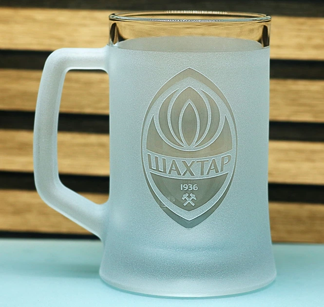 Пивний келих 670 мл ФК Шахтар Донецьк з гравіюванням подарунок для фаната ФК футбольний кухоль