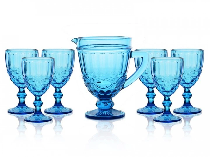 Набір фужерів для напоїв Happy Like Вінтаж 300 мл / 1л 7 шт Синій (34215-7-2)