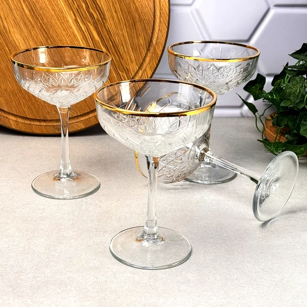 Келихи-купе для шампанського 255 мл*4 шт із золотим обідком Pasabahce Timeless