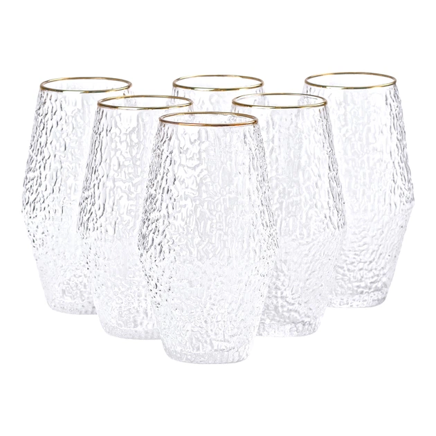 Набір склянок зі скла 600 мл 6 штук для лимонаду із золотим обідком для води та соків (523535)