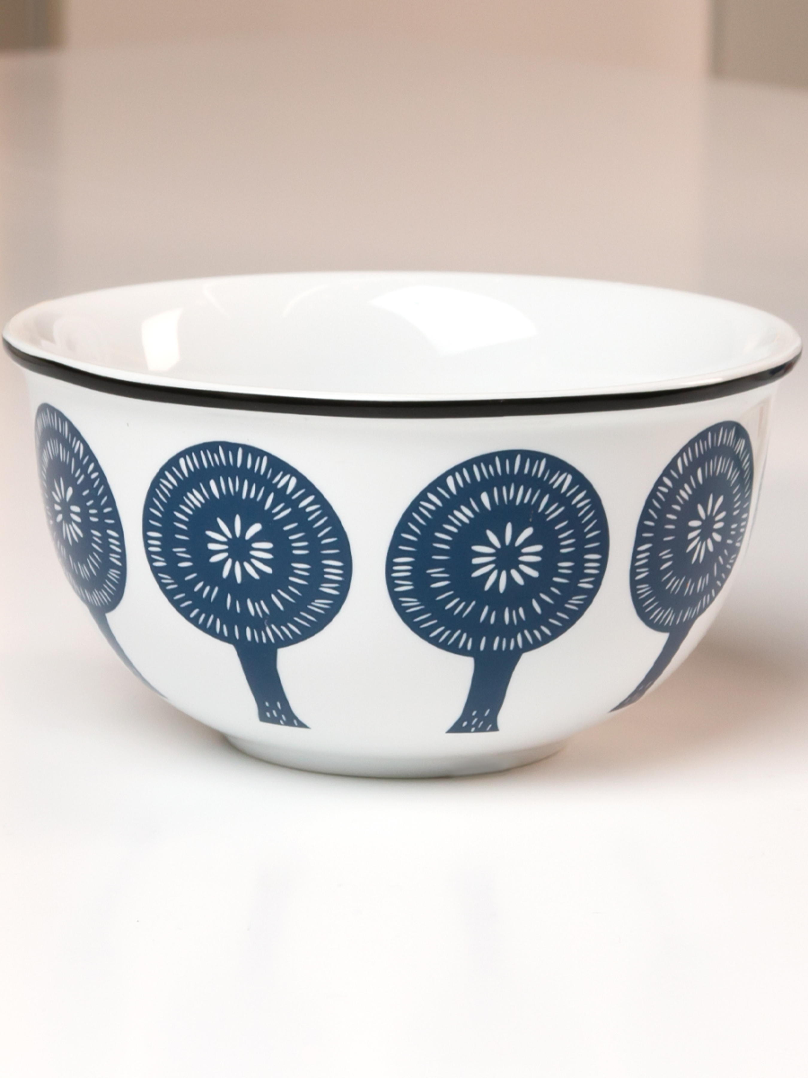 Блюдце з темним геометричним і блакитним рослинним орнаментом по краях. Діаметр 155 мм. Чайне блюдце традиційний посуд для чаювання. Спочатку блюдце використовувалося для того, щоб захистити скатертину від крапель чаю. З цією метою блюдце застосовується і зараз, але не варто обмежувати його можливості. Його можна використовувати і як тарілочку для тістечок, цукерок та інших