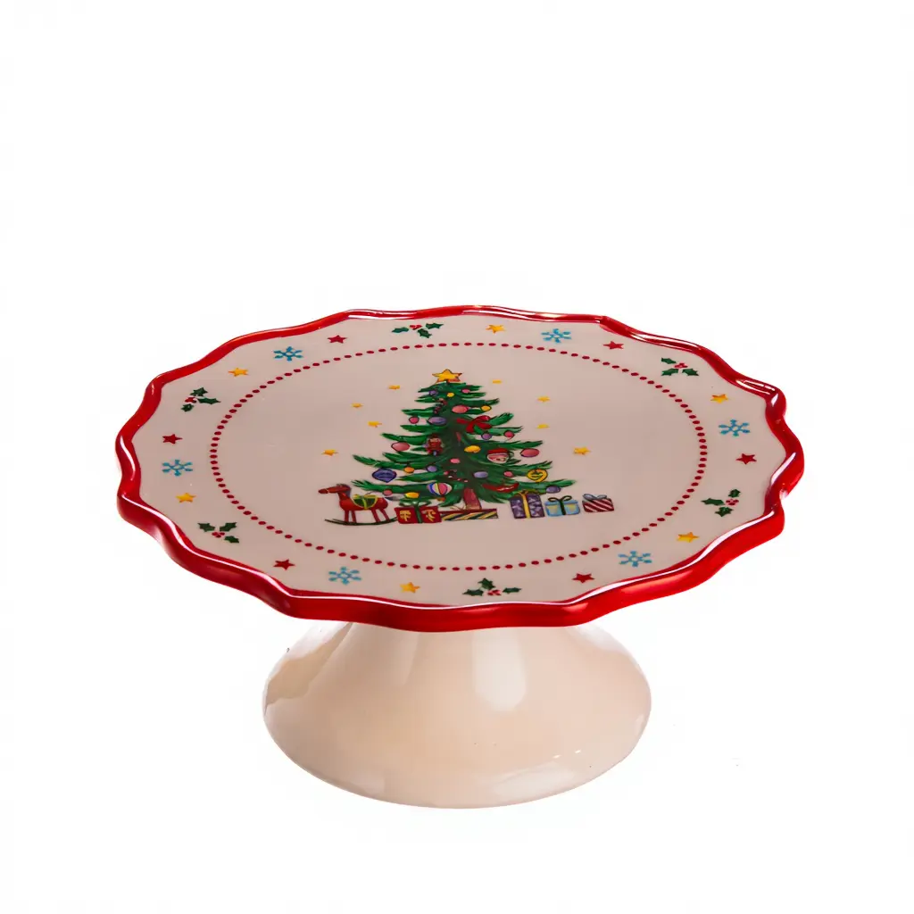 Тортівниця порцелянова Yiwu на ніжці New Year Ø21 (см) підставка для торта, капкейків CR-1-6