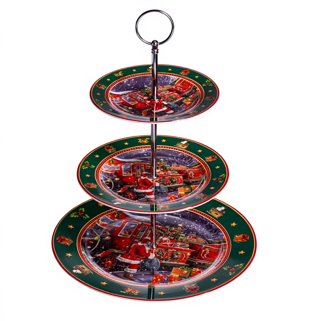 Фруктівниця на 3 яруси Santa новорічна фуршетна стійка для закусок цукерковий посуд Yiwu HP-SDHK-9
