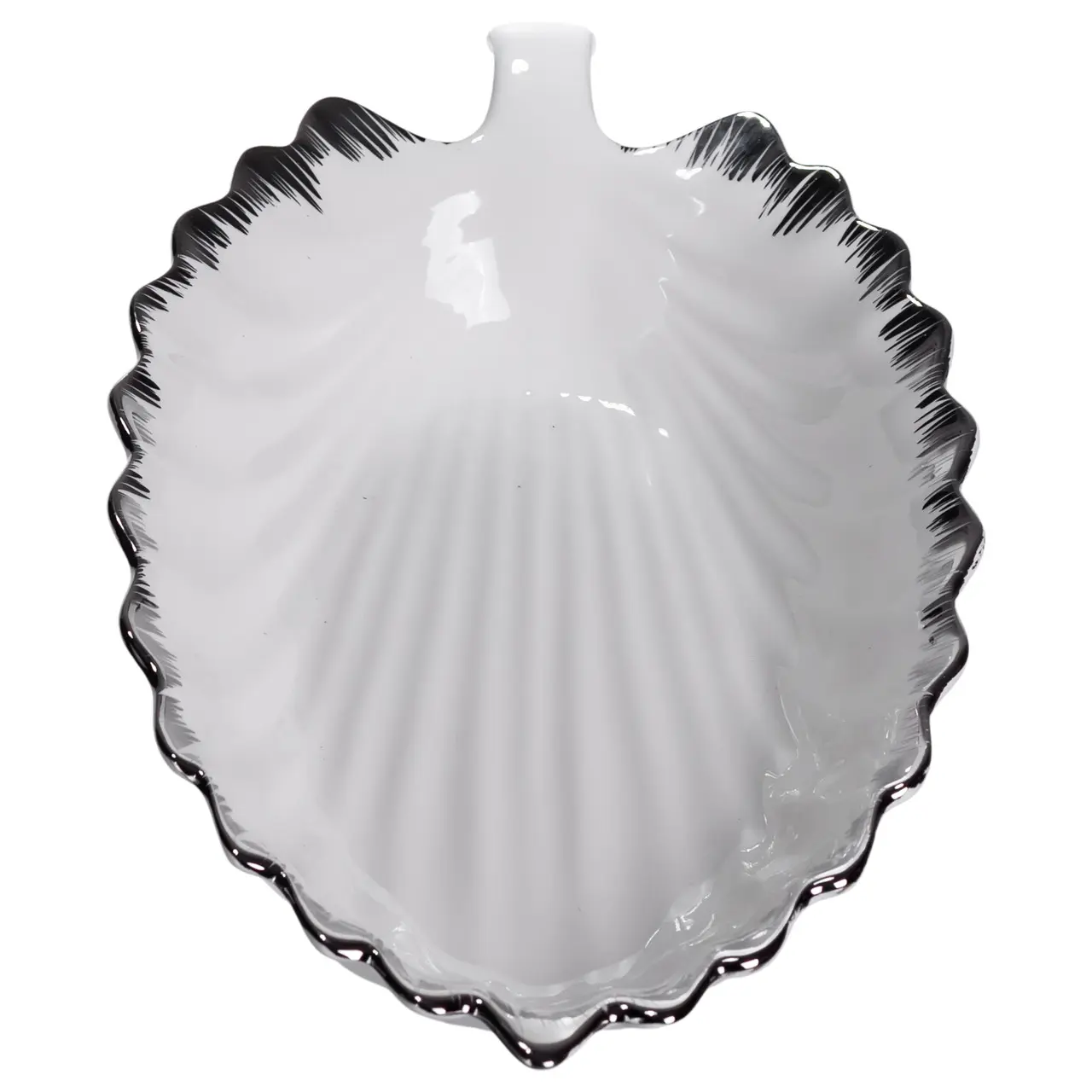 Порцелянове блюдо для сервірування стола у формі листя 37×18×5 (см) блюдо для подавання закусок Білий зі сріблом Yiwu 2552-1