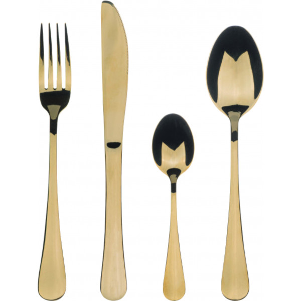 Серія - Munich, Кількість предметів - 24 шт, Довжина - 23 см, Матеріал - нержавіюча сталь, коробка, виделка столова - 6 шт, ніж столовий - 6 шт, ложка столова - 6 шт, ложка чайна - 6 шт, Колір - золотий