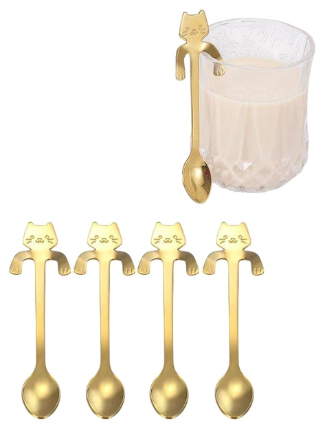 Набір десертних ложечек Котик 4 штуки подарункові Неіржавна сталь 11.6х3.2х2 см Золотисті (CK-165)