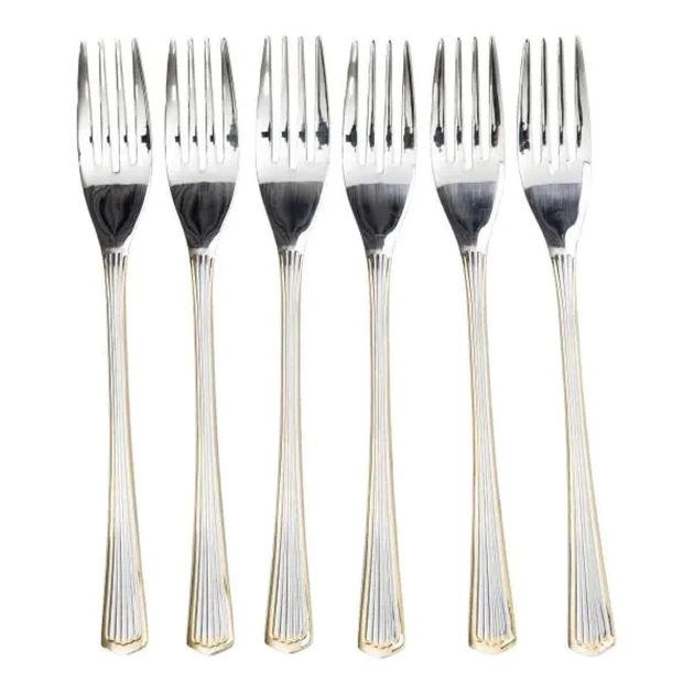 Набір десертних виделок 6 штук виделки для десерту з нержавіючої сталі 15.2 см Срібло із золотим оздобленням HP-20-34 (A-033