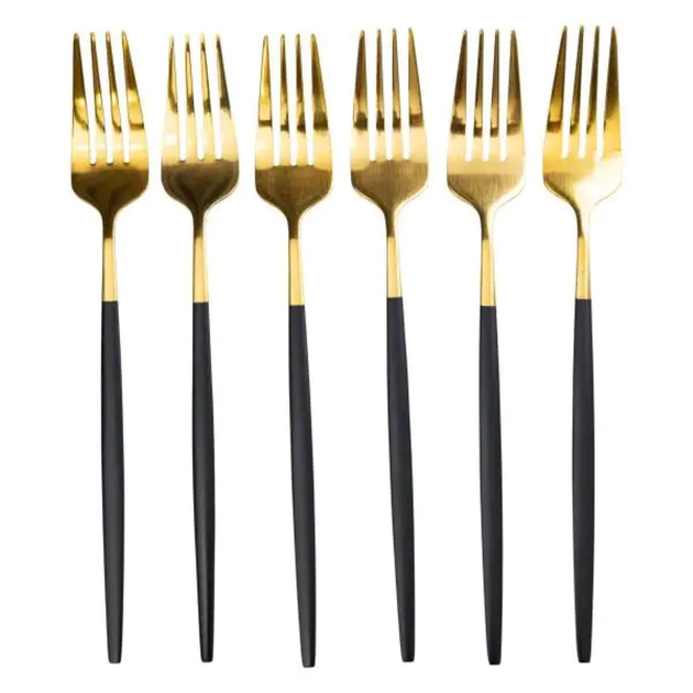Набір столових виделок 6 штук виделка столова з нержавіючої сталі 21.5 см Чорний із золотом HP-20-4 (A-033701)
