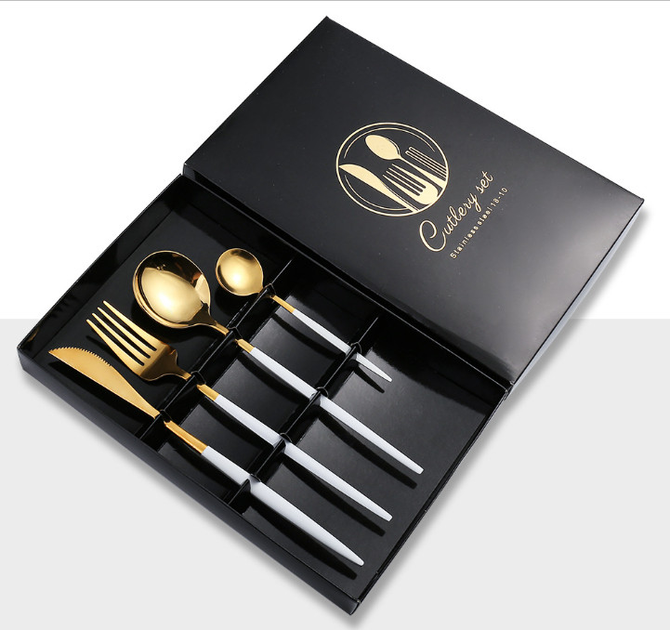Набір столових приладів 8393 4 золотисті предмети з білим