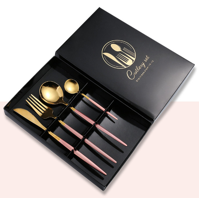 Набір столових приладів 8394 4 предмети золотисті з рожевим