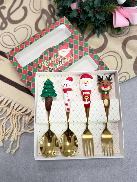 Набір столових приборів «Різдвяна казка» – 2 ложки + 2 виделки з новорічним декором (102-1320)