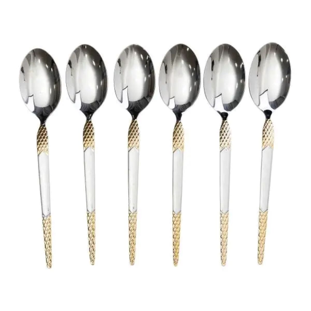 Набір столових ложок 6 штук з нержавіючої сталі ложки столові 21 см Срібло з золотом