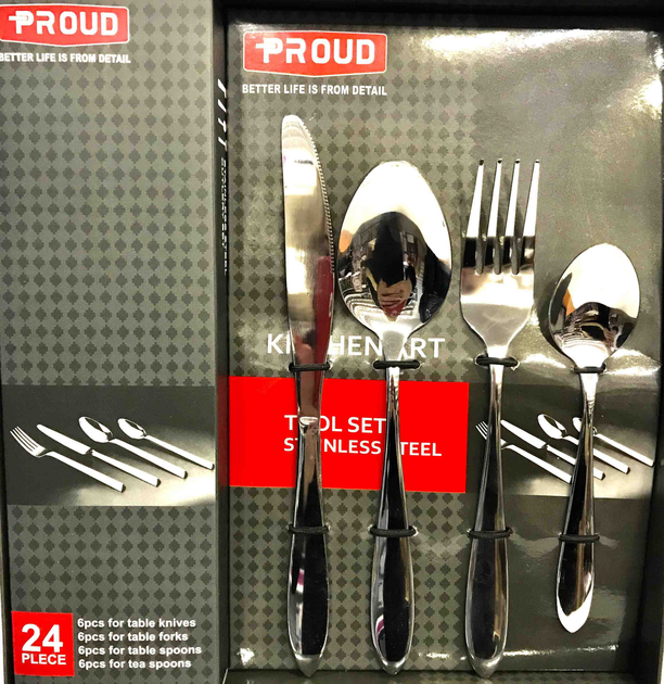 Набір столових приборів 24 предмети набір ложок виделок і ножів на 6 персон Сріблястий