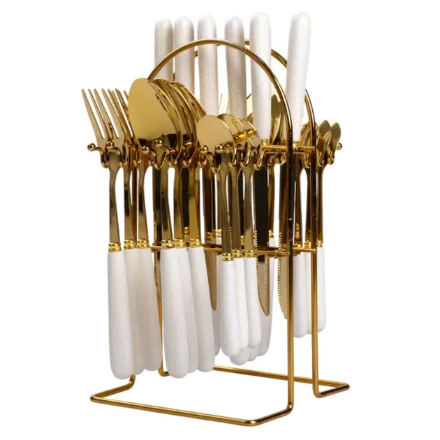 Набір столових приборів на підставці 24 предмети столовий набір на 6 персон Білий HP-20-49 (A-033745)