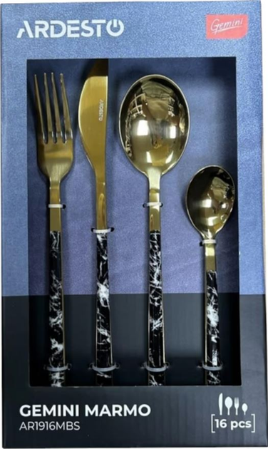 Набір столових приладів Ardesto Gemini Marmo AR1916MBS 16 предметів чорний