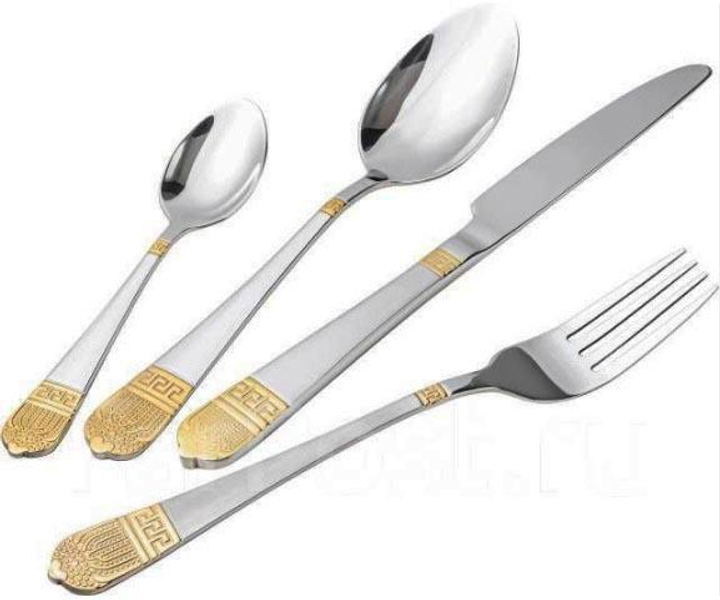 Набір столових приборів золото на 6 персон 24 предмети ложки, виделки, ножі Срібло HP-20-14