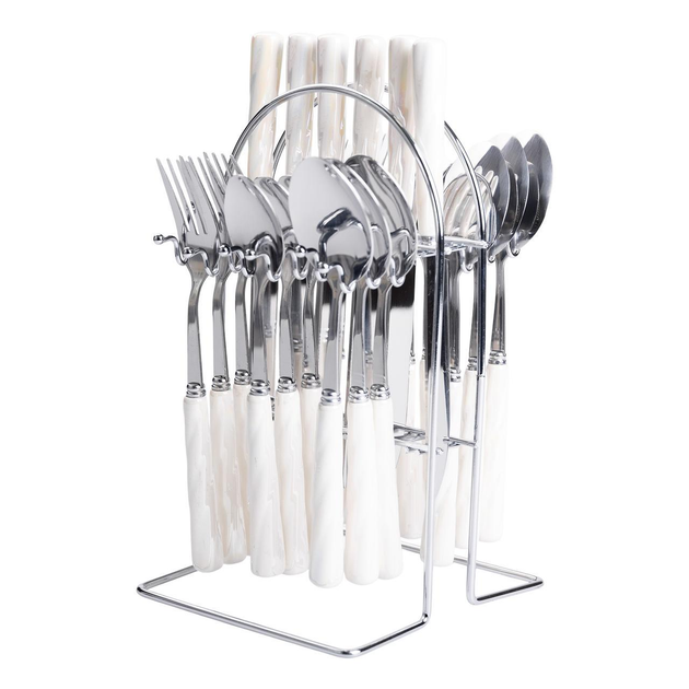 Набір столових приладів на підставці 24 предмети для 6 персон білий зі сріблом комплект сервіровки (524350)