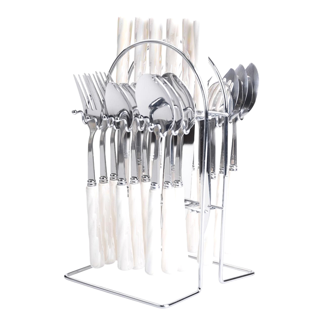 Набір столових приборів на підставці 24 предмети з керамічними ручками Сріблястий Yiwu HP-20-50