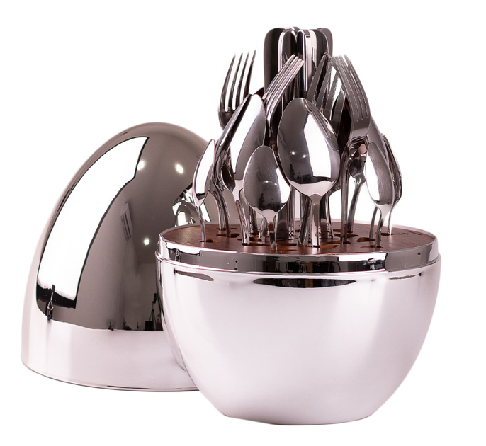 Набір столових приладів на 6 персон з підставкою "Яйце" 24 шт з нержавійки 29х19.5 см Сріблястий