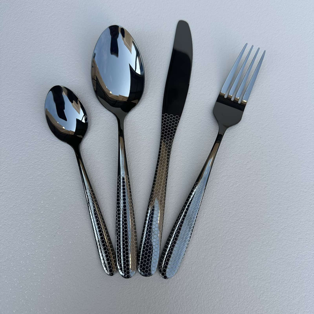 Набір столових приладів на 6 персон Berlinger Haus Black Royal 24 пр. столові ножі, ложки, вилки та ложки для чаю та кави не