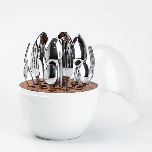 Столове приладдя на 6 персон з нержавіючої сталі 24 предмети з підставкою Яйце білого кольору