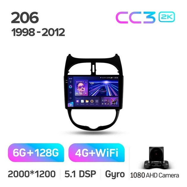 Штатна магнітола TEYES CC3 6+128 GB PEUGEOT 206 1998-2012 9" 2K (L1)