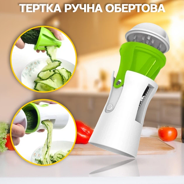 Овочерізка ручна Sunkist spiral Sliser терка для довгої соломки Біла із Зеленим